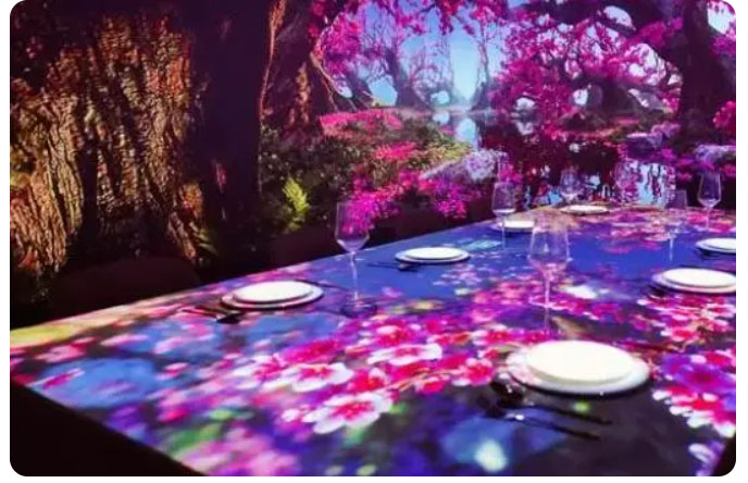 沉浸式體驗是在真實有效的物理空間里,以圖形、圖像、透視算法及人體追蹤系統為核心技術的多模塊系統,植入虛擬世界,完成真實空間虛擬再造,在無任何穿戴設備下實現裸眼混合交互,是現代數字互動科技打造沉浸式數字化展廳的新技術。解決了需要穿戴設備才能沉浸體驗的痛點,同時還避免設備帶來的沉重感和眩暈感,增加虛擬世界的真實性。