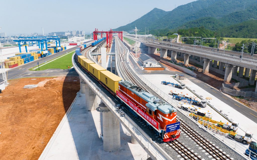6月27日16時25分,一列滿載光伏板、日用百貨等100個標準集裝箱貨物的81114次班列從浙江義烏蘇溪集裝箱辦理站鳴笛啟程,駛向世界第一大港寧波舟山港,標志著國內首個混行模式自動駕駛試驗鐵路場站——蘇溪集裝箱辦理站開通啟用。
